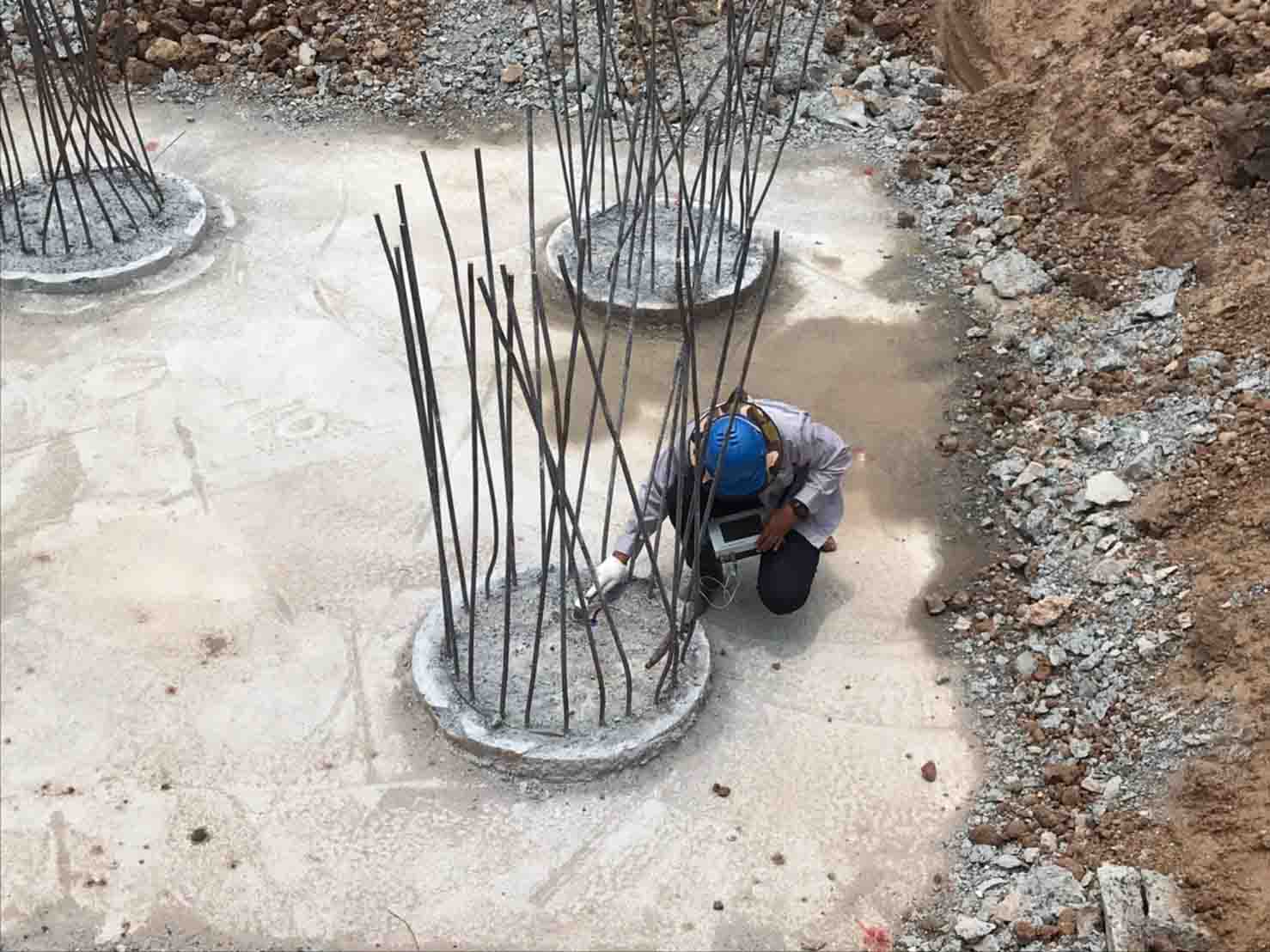 Low strain integrity test is one of the methods for assessing the condition of piles or shafts. It is cost effective and not very time consuming. This method is covered under ASTM D5882 Standard Test Method for Low Strain Integrity Testing of Piles. The test is based on wave propagation theory. The name "low strain integrity test" stems from the fact that when a light impact is applied to a pile it produces a low strain. The impact produces a compression wave that travels down the pile at a constant wave speed. Changes in cross sectional area - such as a reduction in diameter - or material - such as a void in concrete - produce wave reflections. This procedure is performed with a hand held hammer to generate an impact, an accelerometer or geophone placed on top of the pile to be tested to measure the response to the hammer impact, and a data acquisition and interpretation electronic instrument. Moreover, This Scope of work in low Strain integrity test has been certified according to ISO9001:2015 standard which is the first and only testing company in Thailand that is certified in this section.