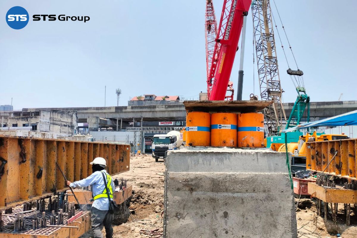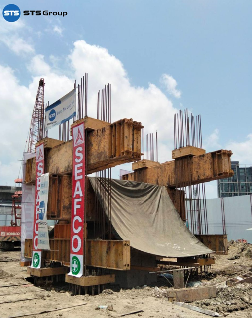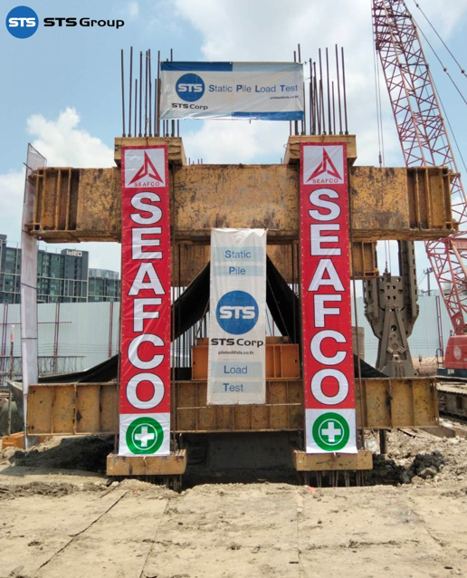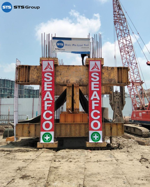 Static Pile Load Test โครงการ Bangkok Mall Phase 2 ของ STS Group หน่วยธุรกิจทดสอบเสาเข็ม (STSCorp: PT-BU) สถานที่ : ถ.สุขุมวิท เขตบางนา กรุงเทพมหานคร เสาเข็มทดสอบ : Bored Pile Dia. 1.35 x 62.50 m. (Max Compression test Load 2,060 tons) ระบบแรงปฏิกริยา : 4 nos. of Anchor Pile System Piling Contractor : Seafco PCL. Pile Testing Company : STS Corporation Co.,Ltd.