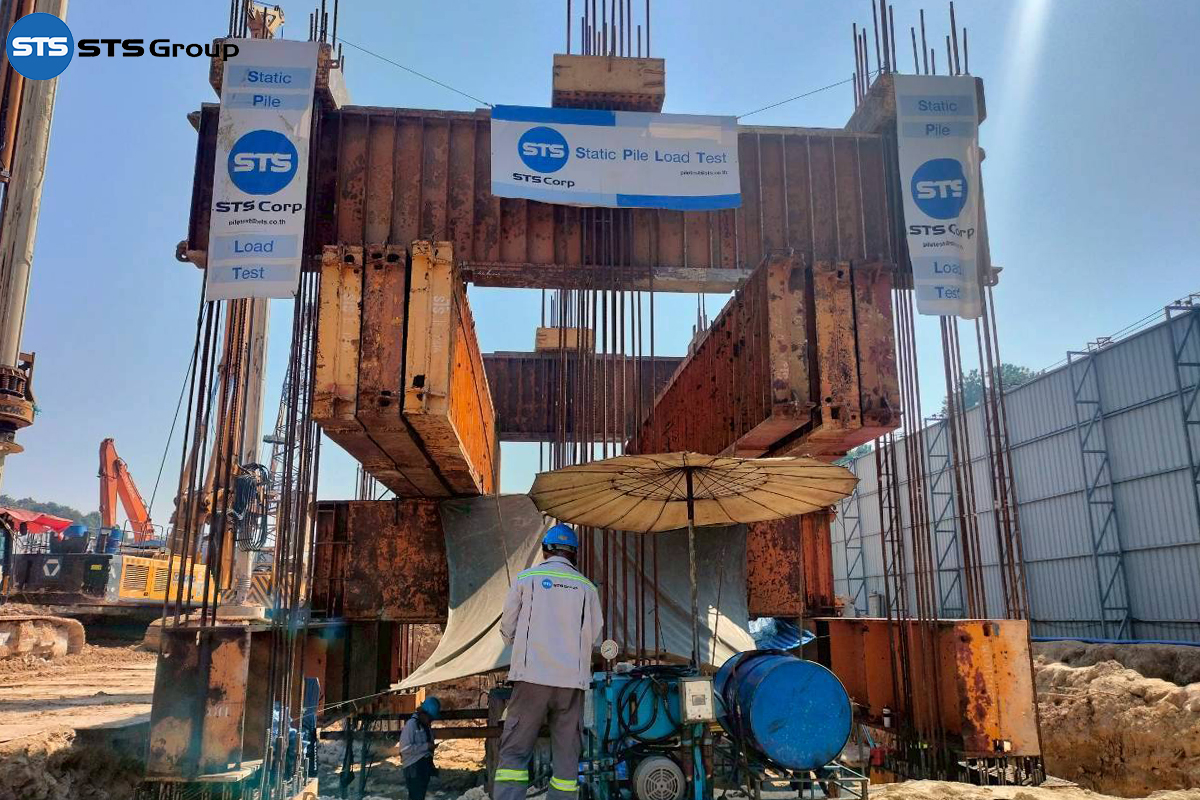 งานทดสอบ Static Pile Load Test โครงการ ONCE WONGAMAT CONDOMINIUM PROJECT ของ STS Group หน่วยธุรกิจทดสอบเสาเข็ม (STSCorp : PT-BU) สถานที่ : อ. บางละมุง จ.ชลบุรี เสาเข็มทดสอบ : Bored Pile Dia. 1.80 x 25.00 m. (Max Compression test Load 3,300 tons) ระบบแรงปฏิกริยา : 6 nos. of Anchor Pile System Piling Contractor : Siam Tone Co.,Ltd. Pile Testing Company : STS Corporation Co.,Ltd.