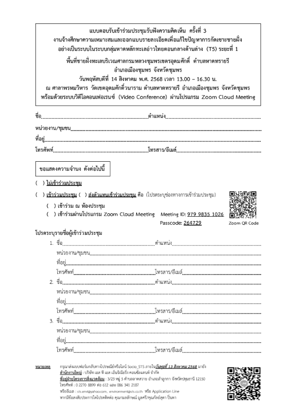 ขอเชิญเข้าร่วมประชุมรับฟั