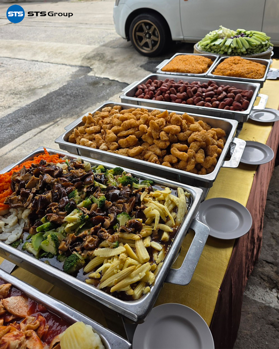 ภายในงานมีการถวายภัตตาหารเพล เครื่องสังฆทานแด่พระสงค์จำนวน 9 รูป จากวัดไผ่ตัน ภายหลังจากเสร็จพิธีแล้ว ทางบริษัทฯ ยังได้จัดเตรียมอาหารบุฟเฟต์ เลี้ยงพนักงานทุกคนในมื้ออาหารกลางวัน โดยมีพนักงาน และผู้จัดการฝ่ายเข้าร่วมงานอย่างพร้อมเพรียงกัน บรรยากาศภายในงานเป็นไปด้วยความอบอุ่น เป็นกันเอง