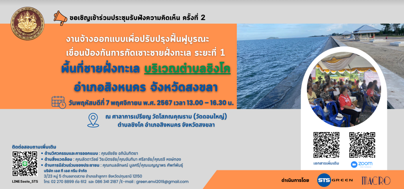 งานจ้างออกแบบเพื่อปรับปรุงพื้นฟูบูรณะเขื่อนป้องกันการกัดเซาะชายฝั่งทะเล ระยะที่ 1 พื้นที่ชายฝั่งทะเลบริเวณตำบลชิงโค