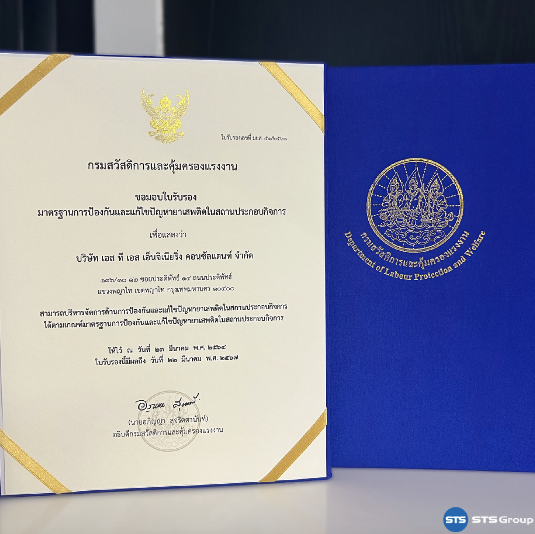 การจัดงานในครั้งนี้มีวัตถุประสงค์เพื่อสร้างเจตคติที่ดีในการป้องกัและแก้ไขปัญหายาเสพติด ซึ่งบริษัท เอส ที เอส คอร์ปอเรชั่น จำกัด บริษัท เอส ที เอส เอ็นจิเนียริ่ง คอนซัลแตนท์ จำกัด ได้ผ่านเกณฑ์ประเมินตามข้อกำหนดการดำเนินตามระบบมาตรฐานการป้องกันและแก้ไขปัญหายาเสพติดในสถานประกอบกิจการ (มยส.)