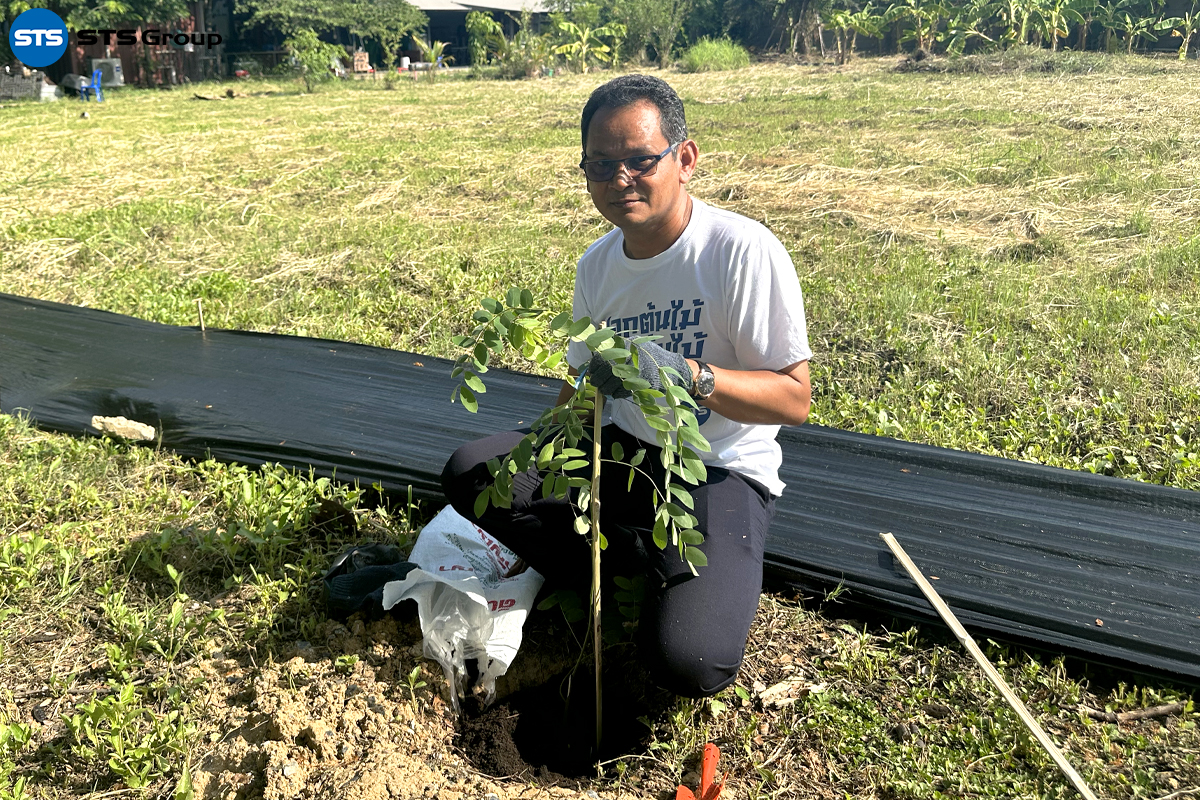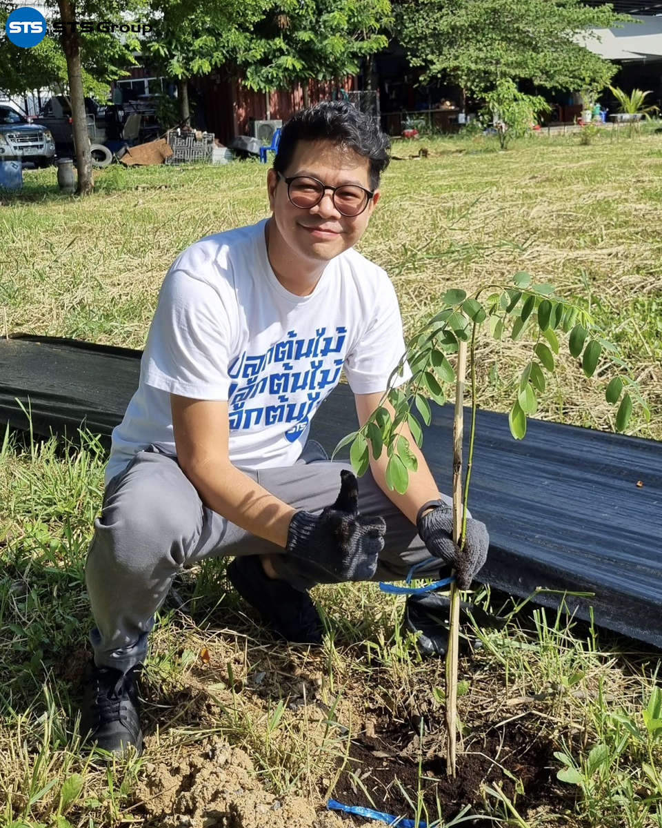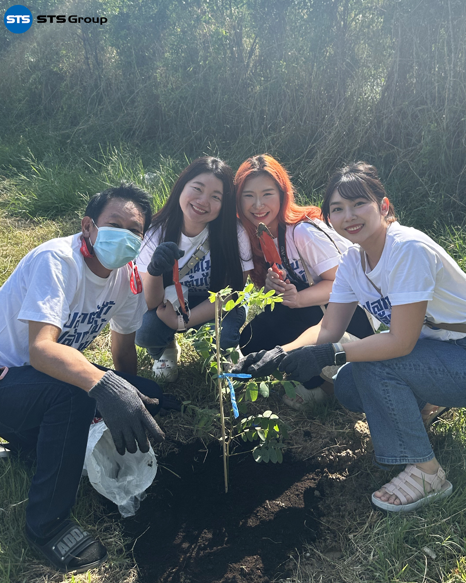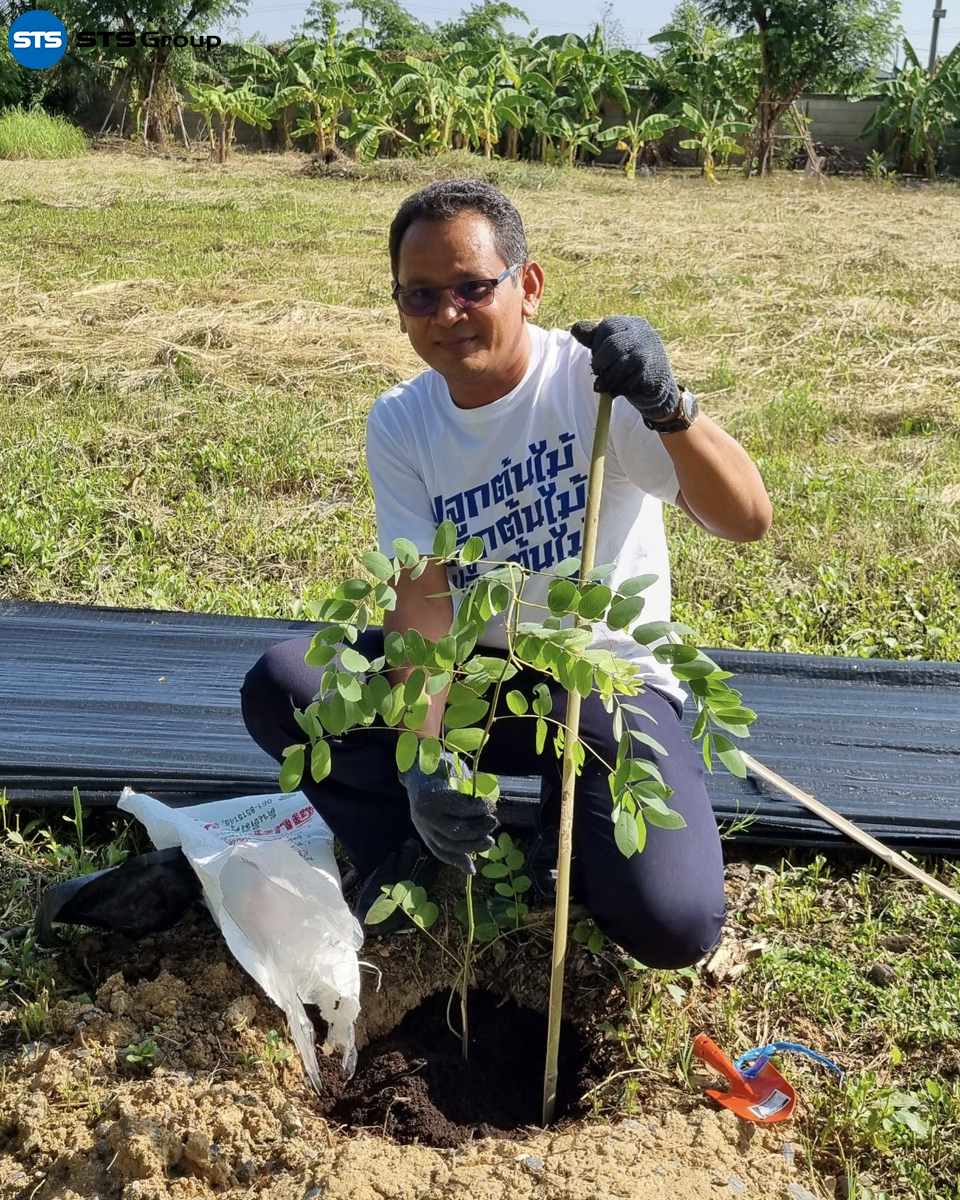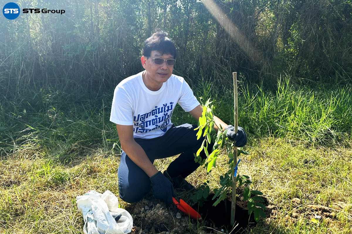 Mr. Parnu Songpaiboon, the Group CEO, presided over the tree-planting project opening ceremony. The event was attended by the management team, including Ms. Unnop Tiyanjam, Manager of STS Engineering Consultants Co., Ltd., and Mr. Suwat Buayam, Manager of STS Green, along with other representatives from the company.