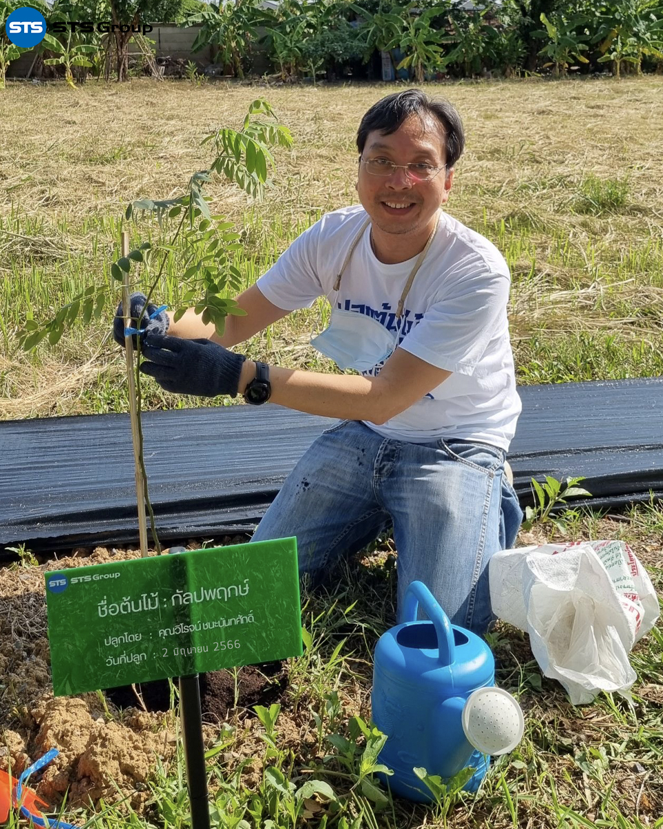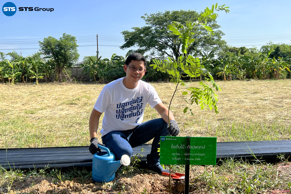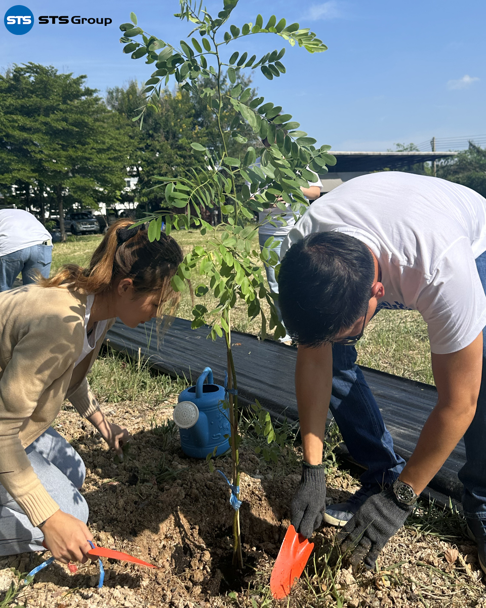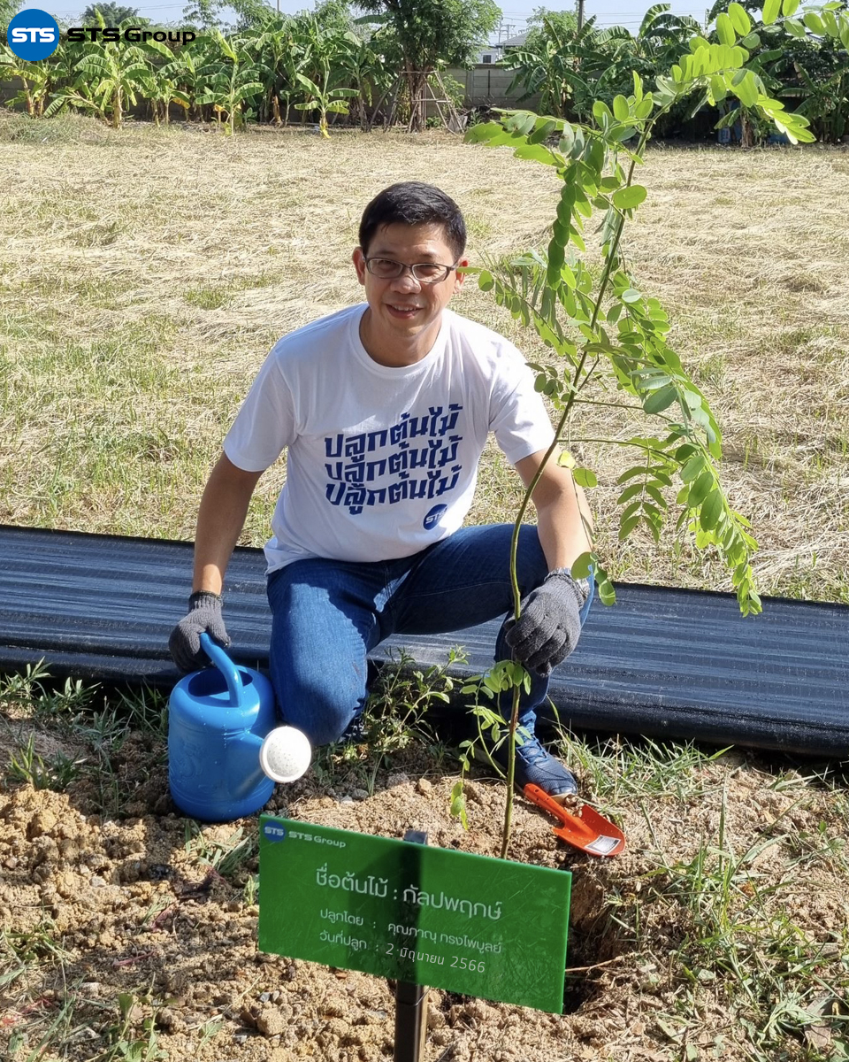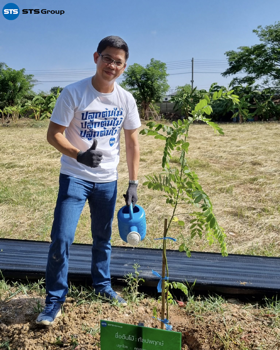 Mr. Parnu Songpaiboon, the Group CEO, presided over the tree-planting project opening ceremony. The event was attended by the management team, including Ms. Unnop Tiyanjam, Manager of STS Engineering Consultants Co., Ltd., and Mr. Suwat Buayam, Manager of STS Green, along with other representatives from the company.