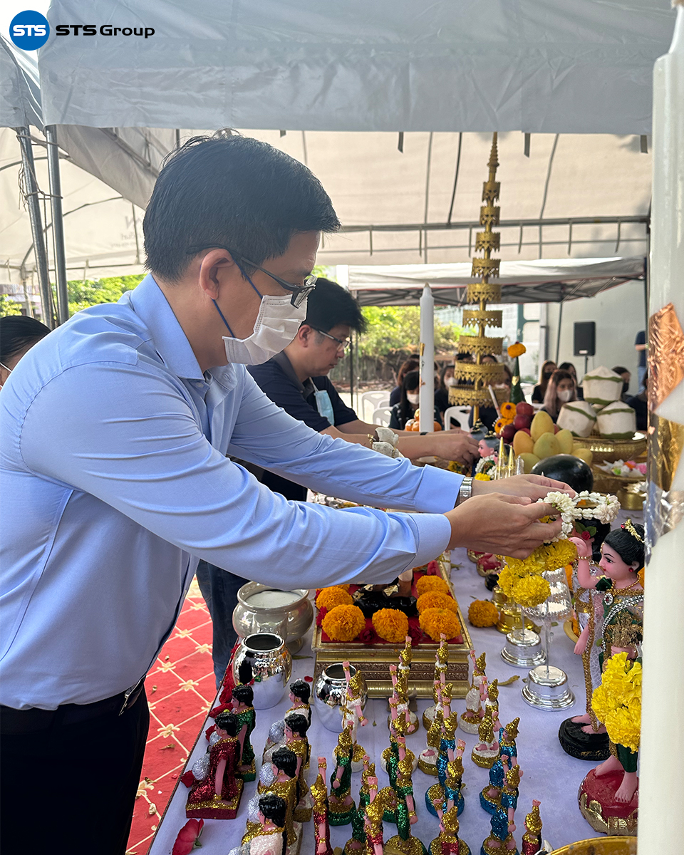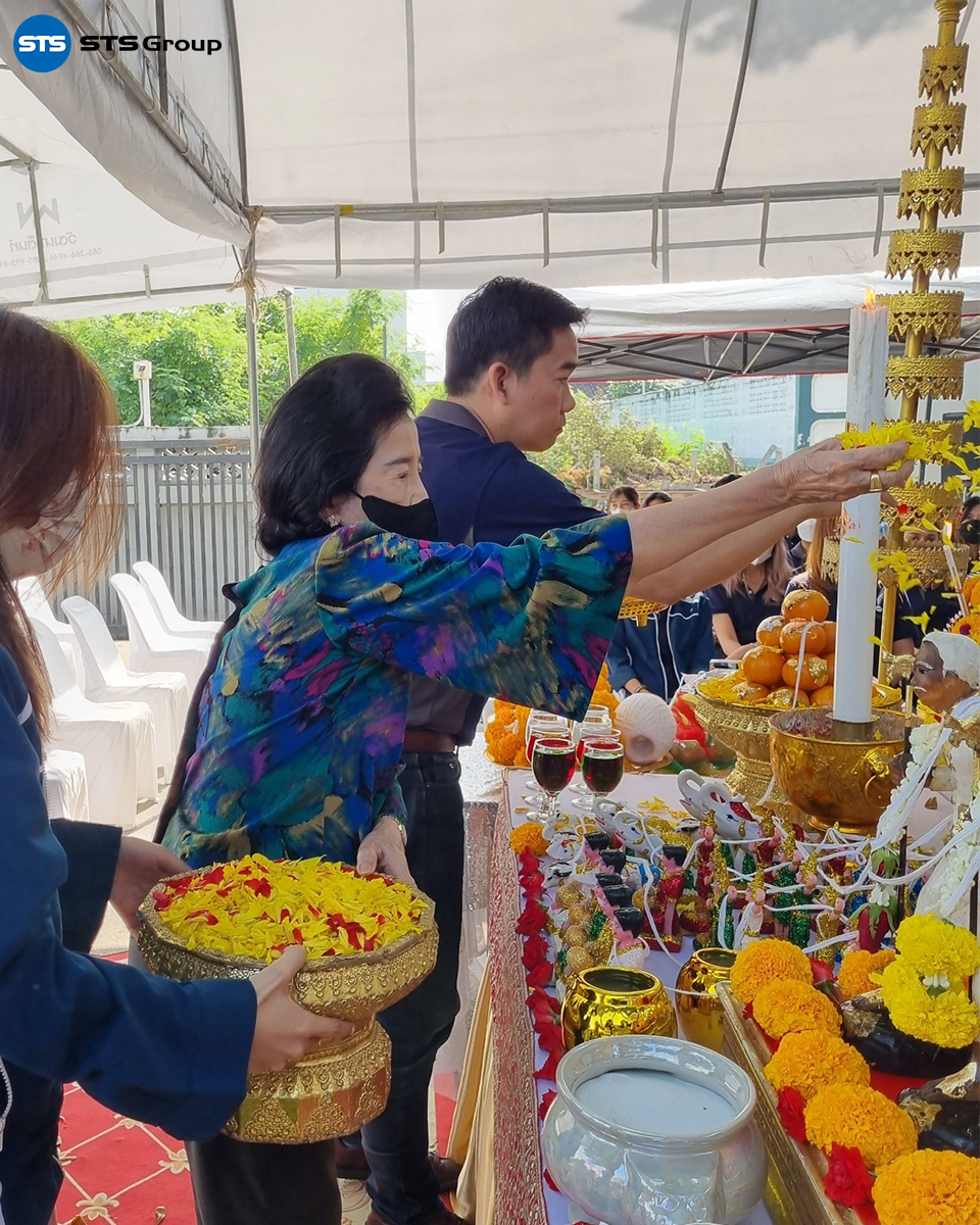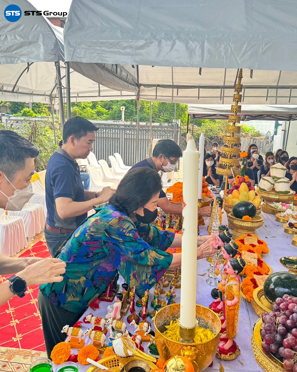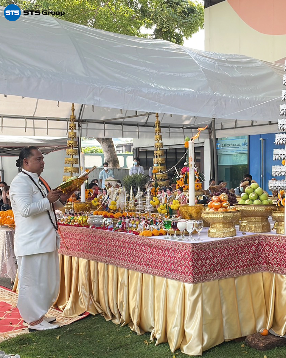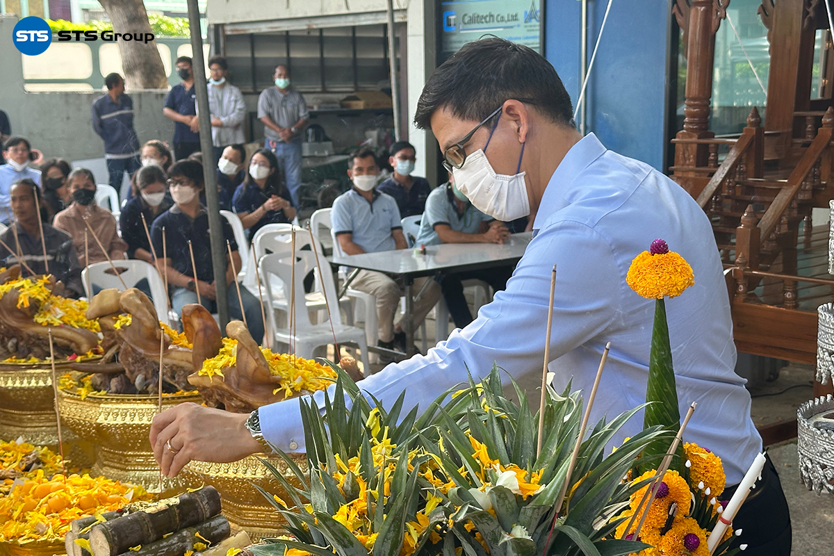 นำโดยคุณภาณุ ทรงไพบูลย์ (ประธานเจ้าหน้าที่บริหารกลุ่มบริษัท เอส ที เอส) เป็นประธานในพิธี และได้รับเกียรติจากคุณเสาวนี ทรงไพบูลย์ คุณณัฐมนต์ กัมปนานนท์ (กรรมการผู้จัดการ บริษัท เอส ที เอส คอร์ปอเรชั่น จำกัด) คุณธนบัตร เอื้อวรกุลชัย (รองกรรมการผู้จัดการอาวุโส ส่วนธุรกิจ Pile Testing) คุณภูมินทร์ ทรงไพบูลย์ ( รักษาการผู้จัดการฝ่ายสนับสนุน) และพนักงานเข้าร่วมในพิธี ทั้งนี้เพื่อเพื่อความเป็นสิริมงคลแก่บริษัทและพนักงานทุกคน ให้มีความเจริญรุ่งเรือง และเป็นขวัญกำลังใจ