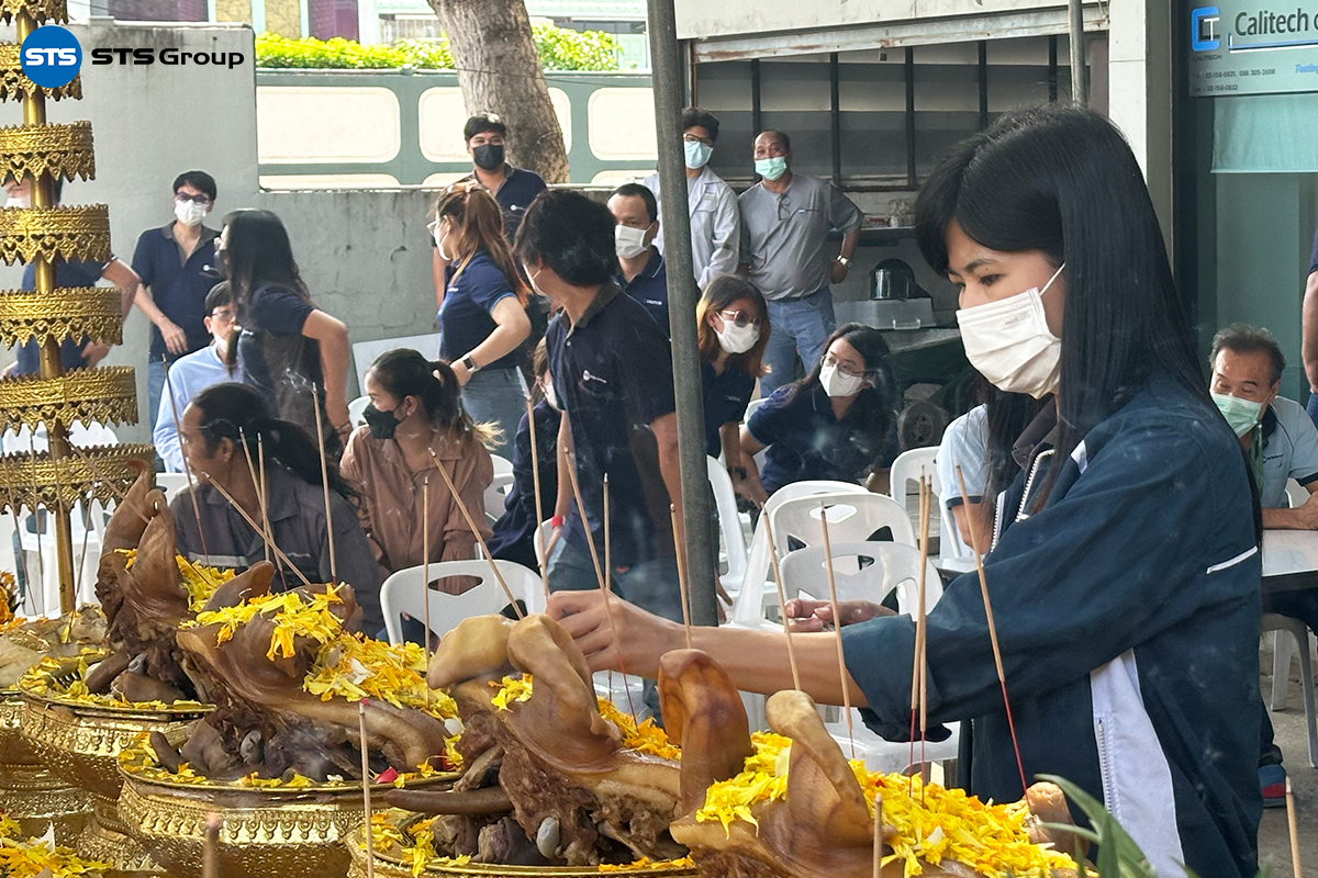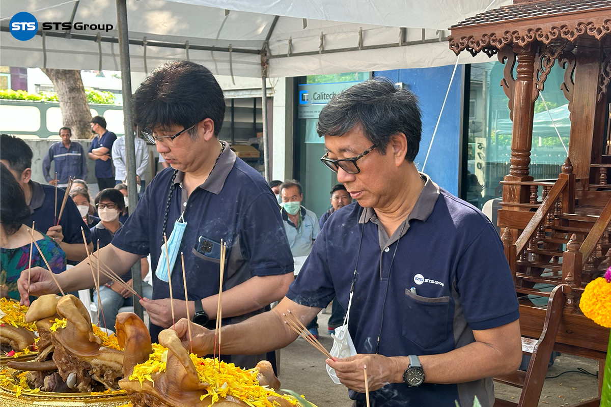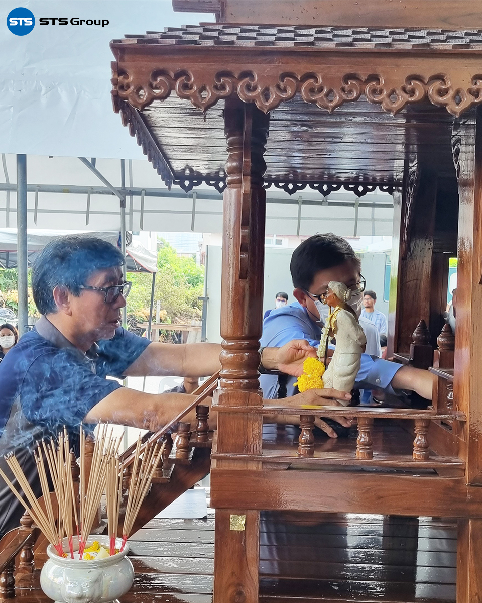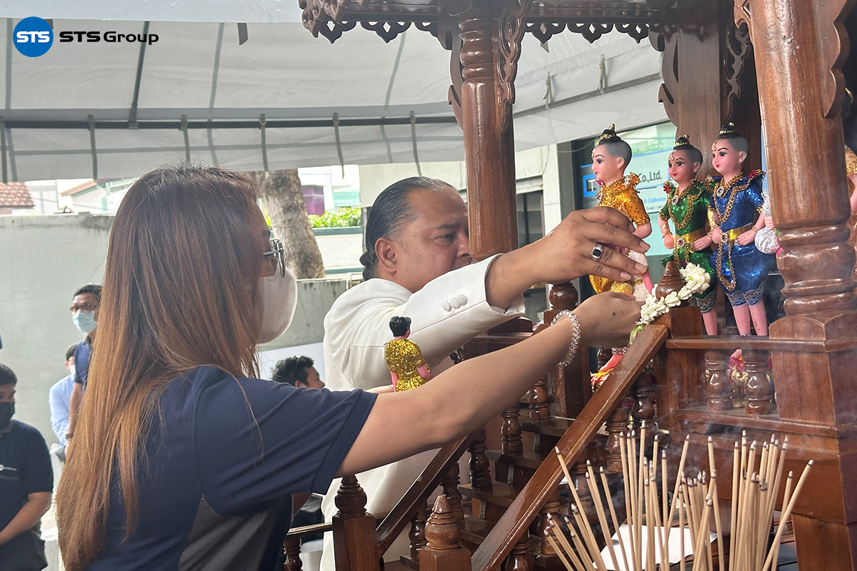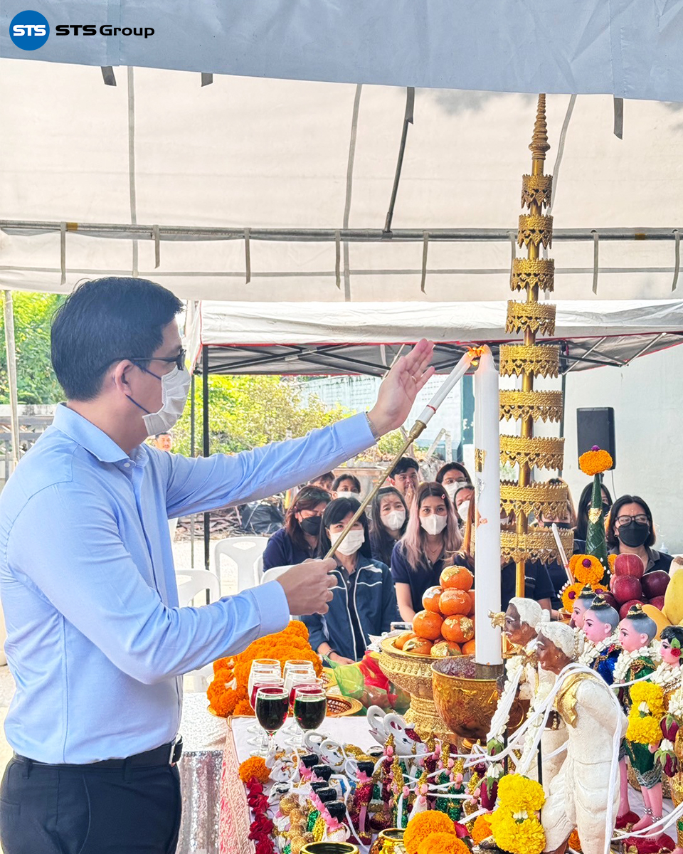 นำโดยคุณภาณุ ทรงไพบูลย์ (ประธานเจ้าหน้าที่บริหารกลุ่มบริษัท เอส ที เอส) เป็นประธานในพิธี และได้รับเกียรติจากคุณเสาวนี ทรงไพบูลย์ คุณณัฐมนต์ กัมปนานนท์ (กรรมการผู้จัดการ บริษัท เอส ที เอส คอร์ปอเรชั่น จำกัด) คุณธนบัตร เอื้อวรกุลชัย (รองกรรมการผู้จัดการอาวุโส ส่วนธุรกิจ Pile Testing) คุณภูมินทร์ ทรงไพบูลย์ ( รักษาการผู้จัดการฝ่ายสนับสนุน) และพนักงานเข้าร่วมในพิธี ทั้งนี้เพื่อเพื่อความเป็นสิริมงคลแก่บริษัทและพนักงานทุกคน ให้มีความเจริญรุ่งเรือง และเป็นขวัญกำลังใจ