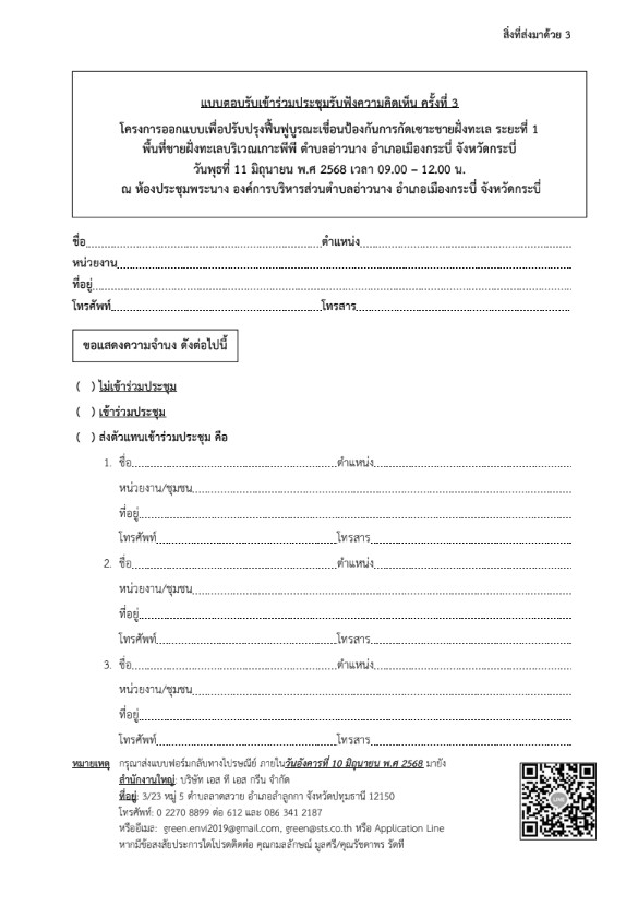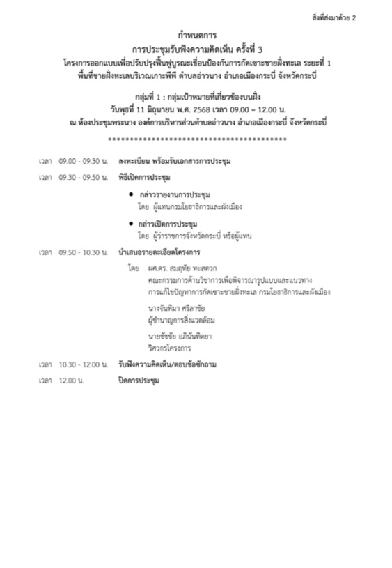 ณ ห้องประชุมพระนาง องค์การบริหารส่วนตำบลอ่าวนาง อำเภอเมืองกระบี่ จังหวัดกระบี่
