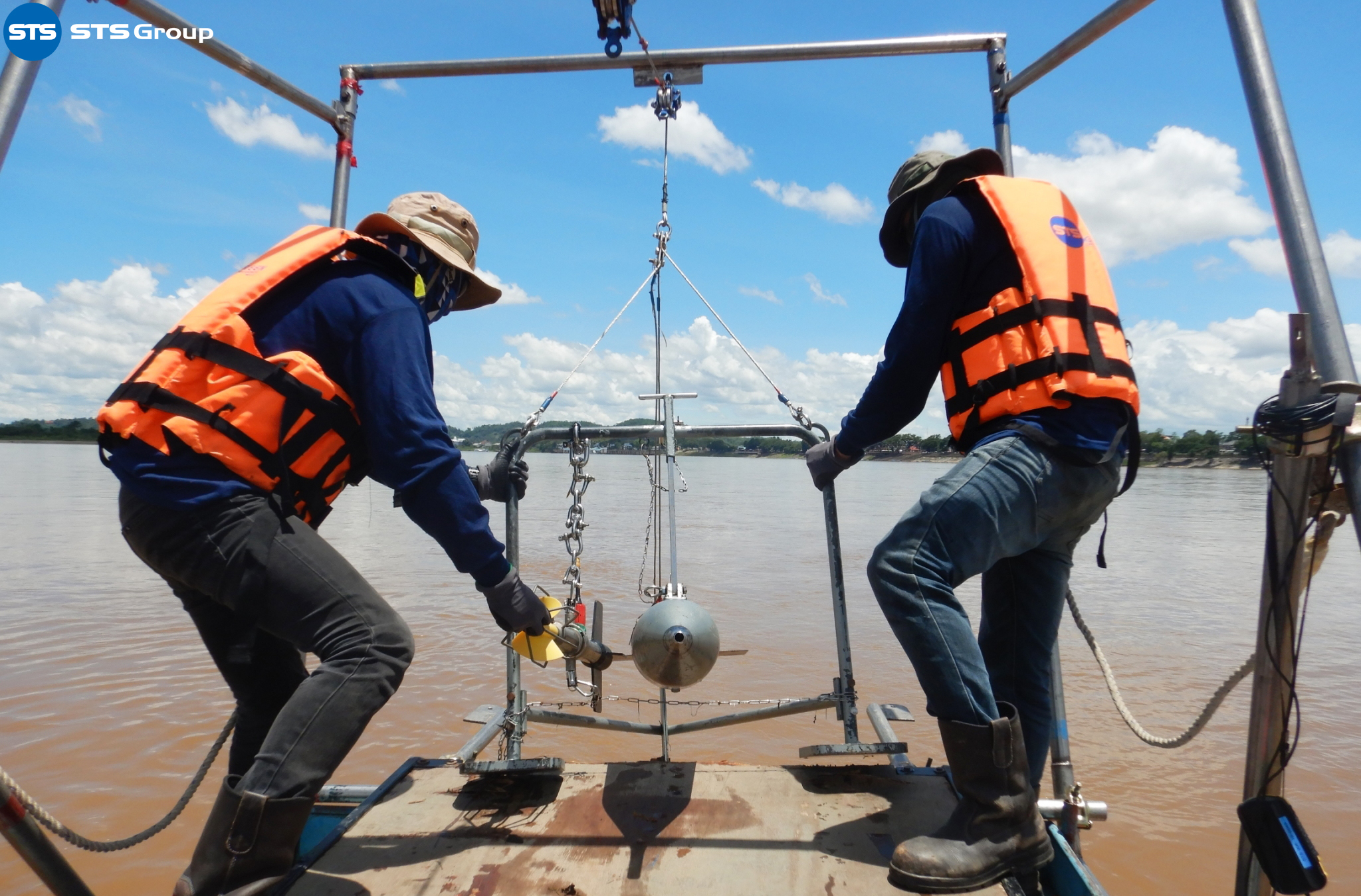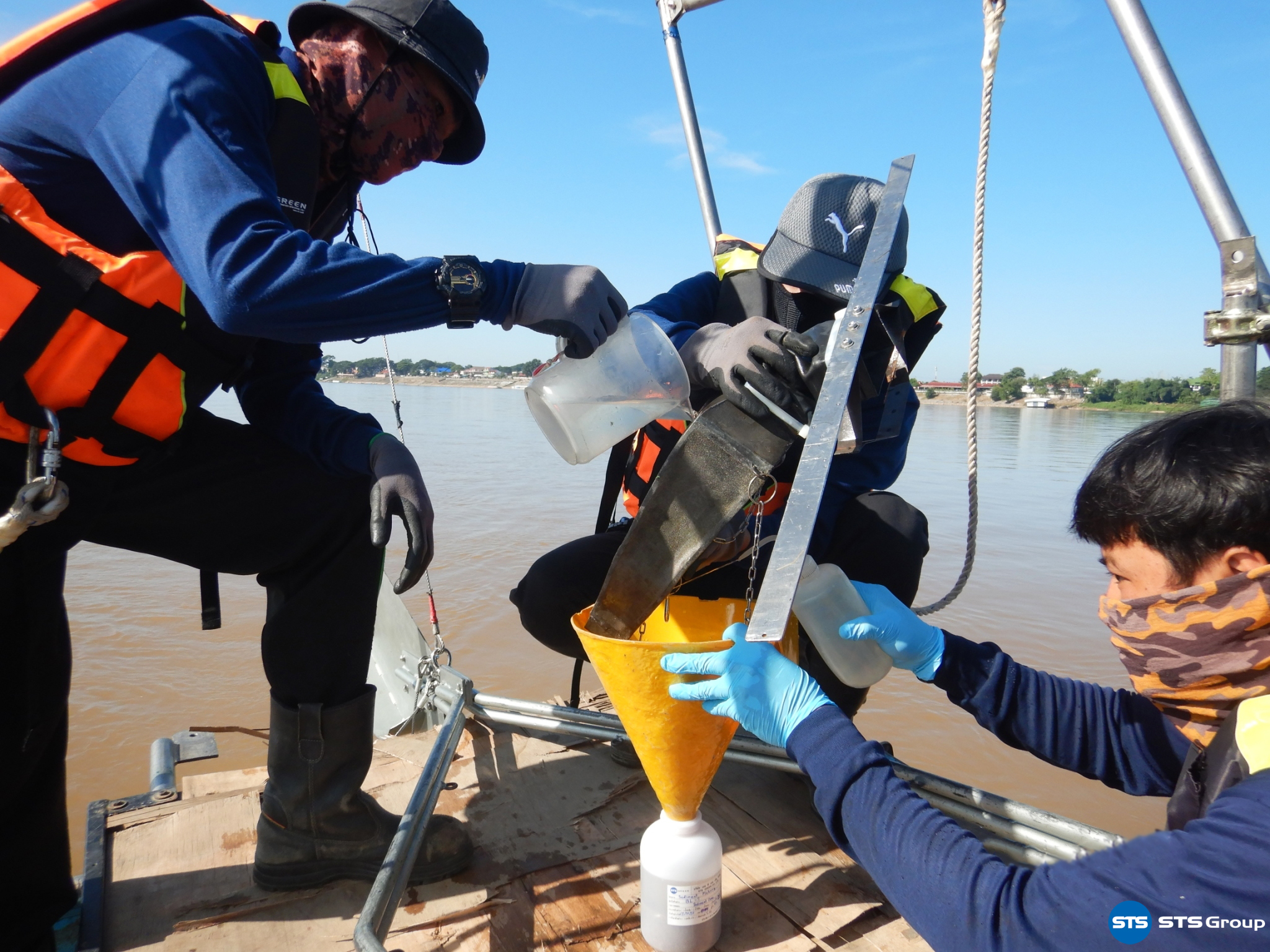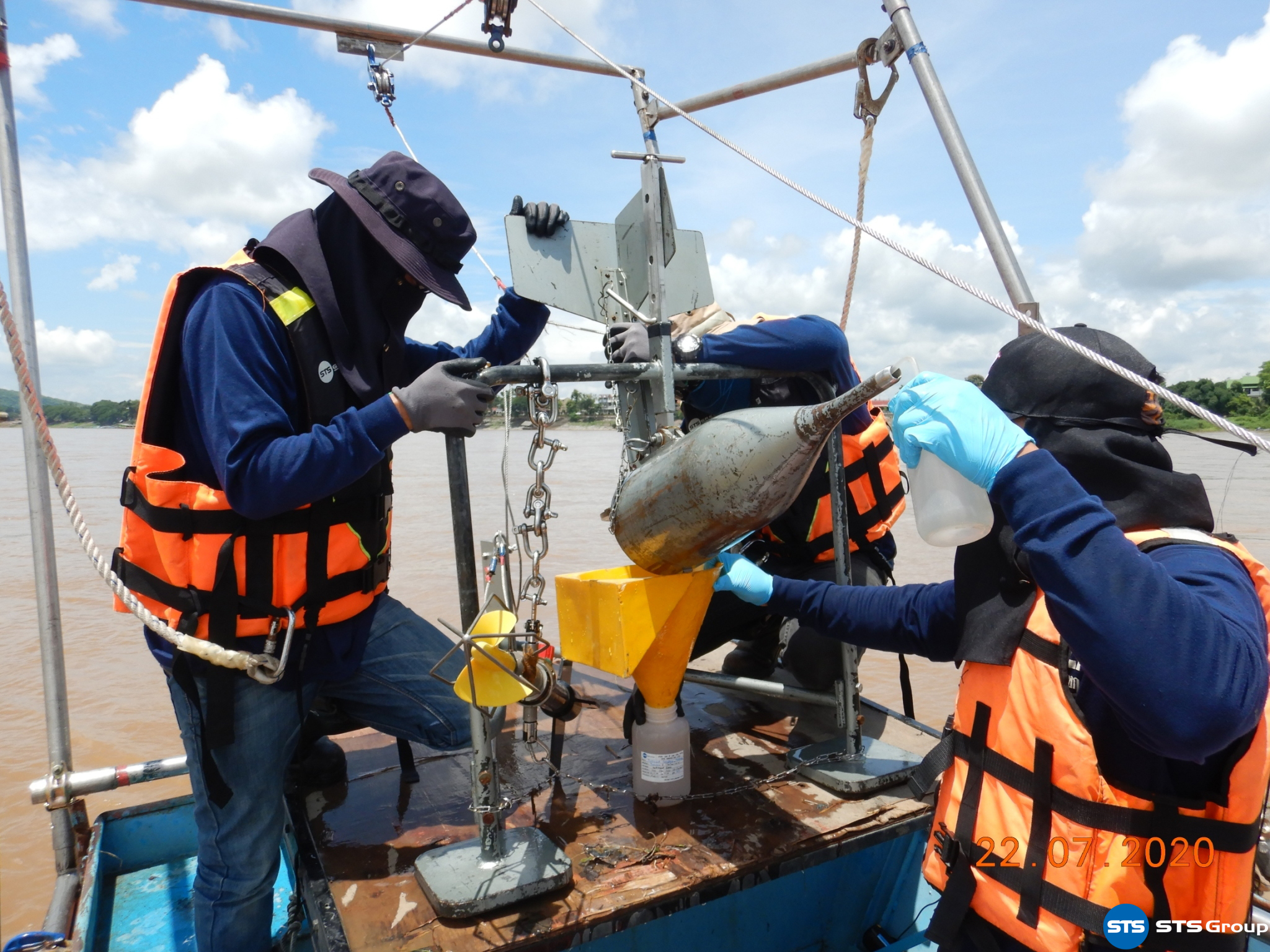 งาน Marine Environmental Survey บริษัท เอส ที เอส ได้ดำเนินการสำรวจ ศึกษา และเก็บตัวอย่างดินตะกอน โครงการศึกษาการเคลื่อนที่ของตะกอนในแม่น้ำโขง อำเภอเชียงแสน จังหวัดเชียงราย - ไซยะบุรี สาธารณรัฐประชาธิปไตยประชาชนลาว โดยมีรายละเอียด ดังนี้ (1) การสำรวจ cross-section ของแม่น้ำ โดยใช้ RTK และ Echo sounder (2) การวัดอัตราการไหลของแม่น้ำ โดยใช้ Current meter/ Acoustic Doppler Current Profiler (ADCP) (3) การเก็บตัวอย่างตะกอนแขวนลอย โดยใช้ Suspended Load Sampler Delft Bottle Type (4) การเก็บตัวอย่างตะกอนพื้นท้องน้ำ โดยใช้ Bed Load Transport Meter Arnhem Type (BTMA) (5) การเก็บตัวอย่างวัสดุพื้นท้องน้ำ โดยใช้ Peterson grab sampler