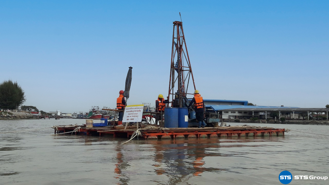 เจาะสำรวจชั้นดินบนบกและในน้ำเพื่อออกแบบฐานรากสะพานข้ามปากแม่น้ำระยอง