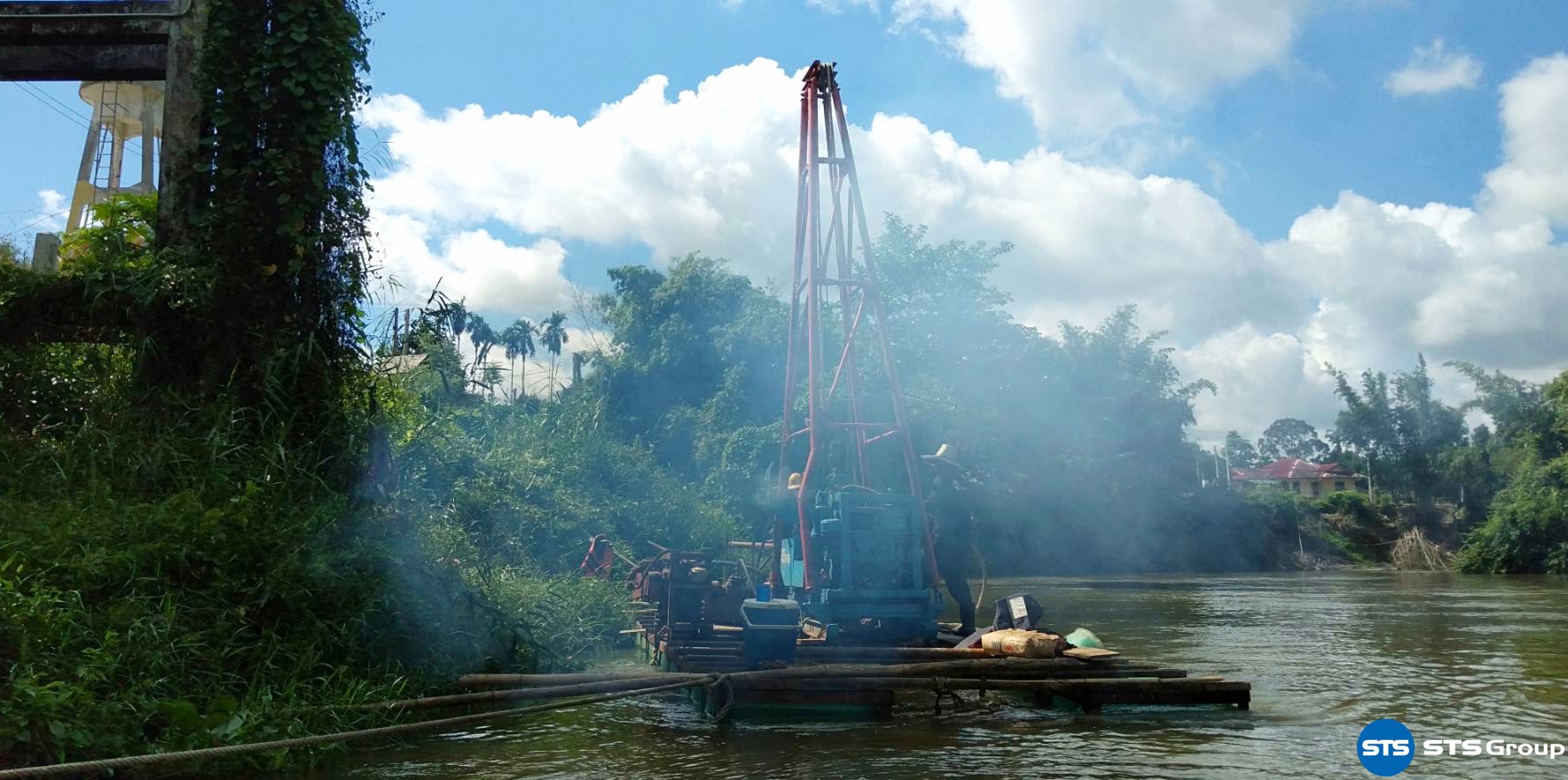 เจาะสำรวจดินบนบกและในน้ำเพื่อนำข้อมูลสภาพชั้นดินไปใช้ในการออกแบบเขื่อนป้องกันตลิ่งริมแม่น้ำจันทบุรี