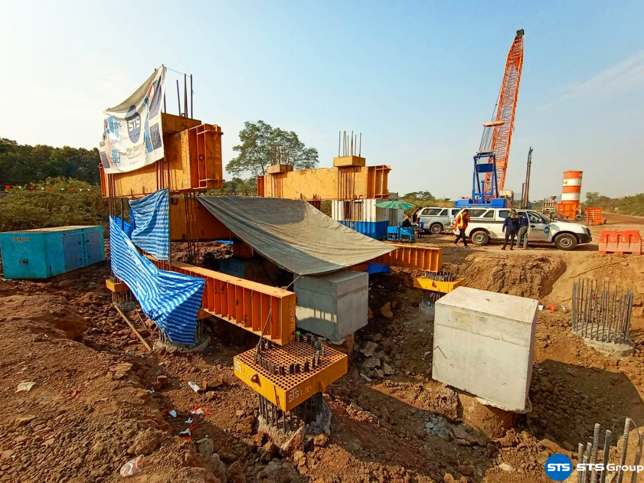 ทดสอบการรับน้ำหนักของเสาเข็ม โครงการจ้างเหมาทำการก่อสร้างสะพานลอยกลับรถ บนถทางหลวงหมายเลข 35