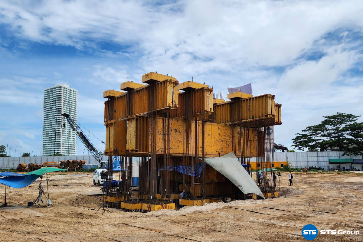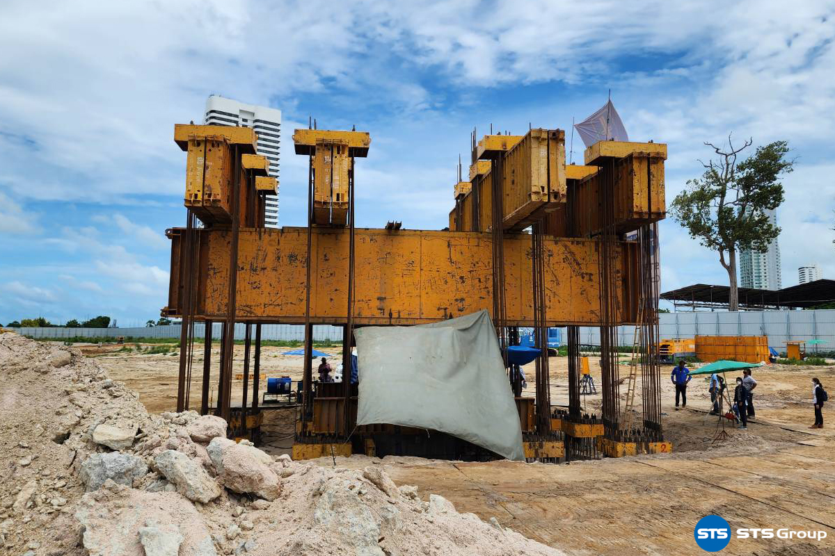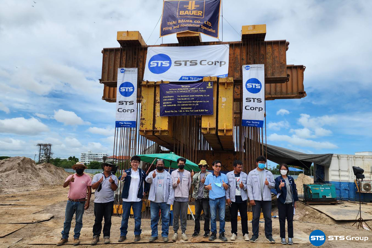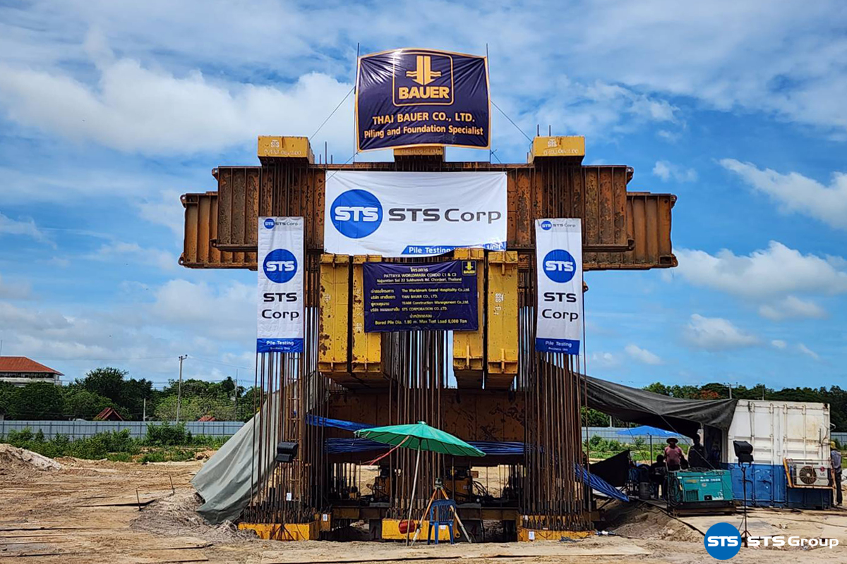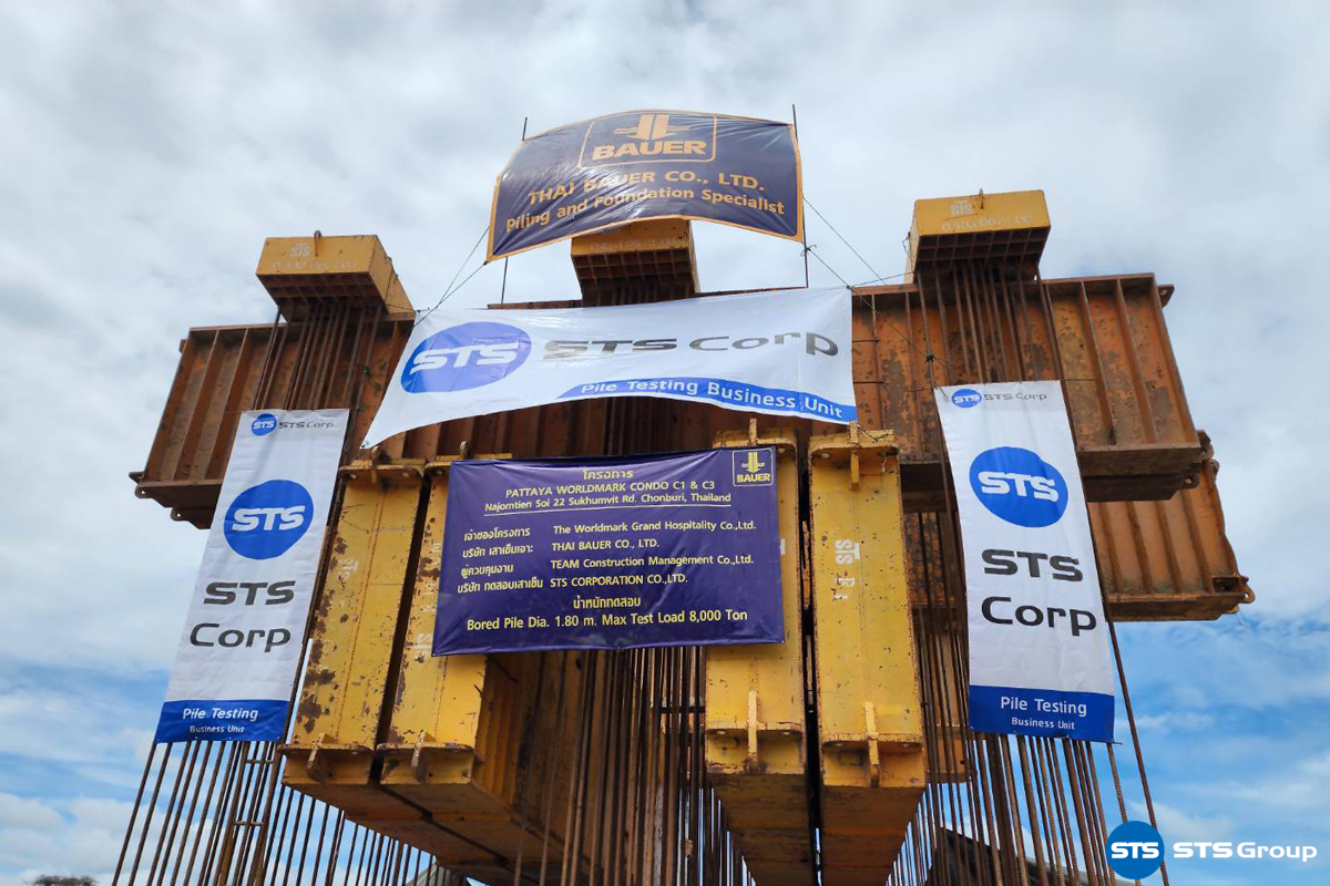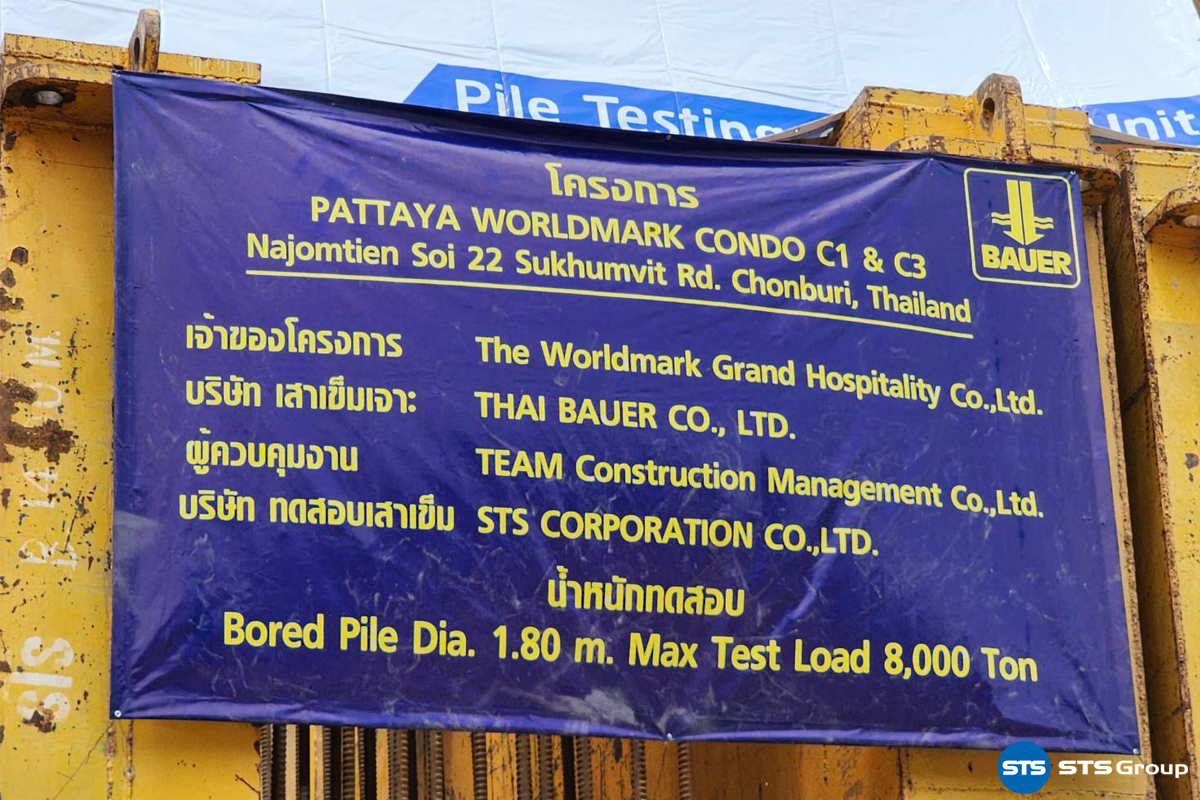 Testing: Full Instrumented Static Pile Load Test by STS Corp: PT-BU [STS Group] Project: Pattaya Worldmark Project Location: Na Chomtien Soi 22 Sukhumvit Rd., Chonburi Province Pile Testing: Bored Pile Dia. 1.80 x 28.40 ม. (Max target test Load 8,000 tons) Reaction System: 12 nos. of Anchor Pile System Piling Contractor: Thai Bauer Co., Ltd. Pile Testing Company: STS Corporation Co., Ltd.