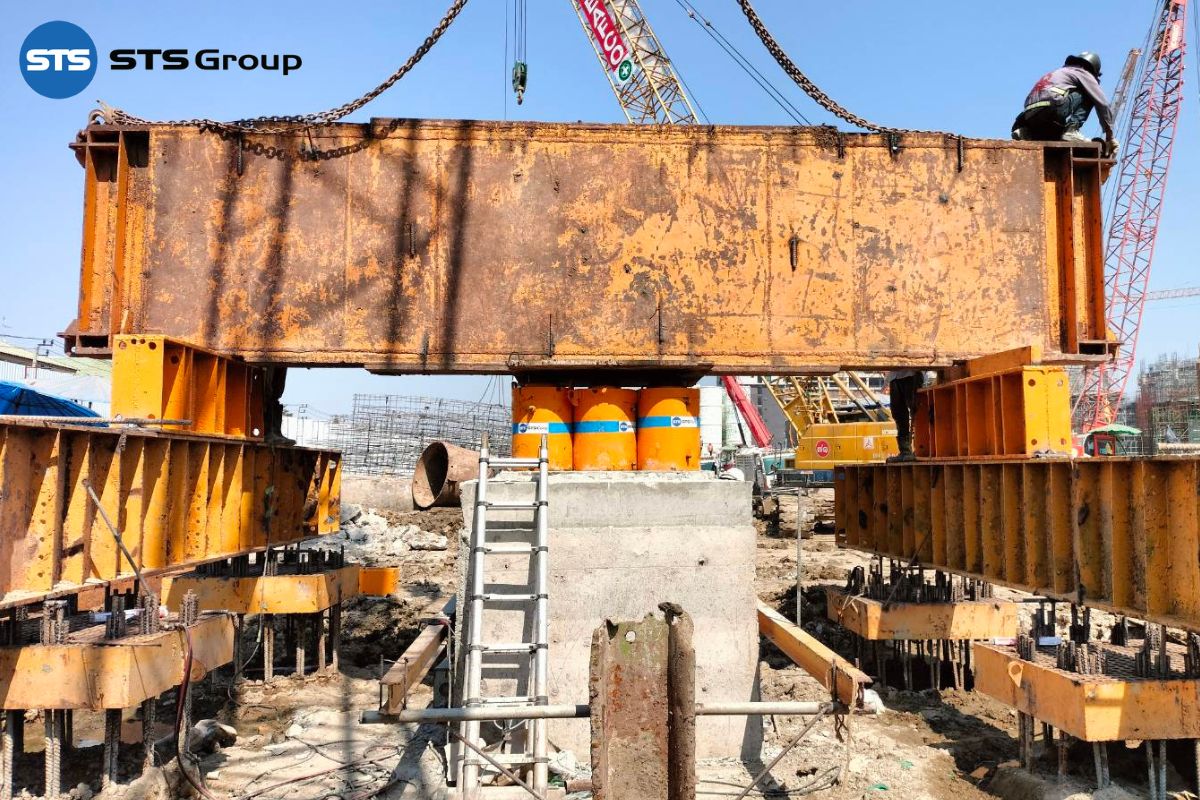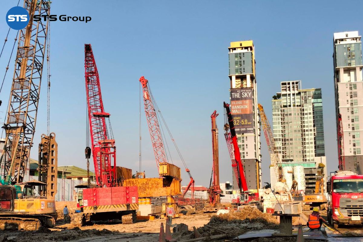 Static Pile Load Test โครงการ Bangkok Mall Phase 2 ของ STS Group หน่วยธุรกิจทดสอบเสาเข็ม (STSCorp: PT-BU) สถานที่ : ถ.สุขุมวิท เขตบางนา กรุงเทพมหานคร เสาเข็มทดสอบ : Bored Pile Dia. 1.35 x 62.50 m. (Max Compression test Load 2,060 tons) ระบบแรงปฏิกริยา : 4 nos. of Anchor Pile System Piling Contractor : Seafco PCL. Pile Testing Company : STS Corporation Co.,Ltd.