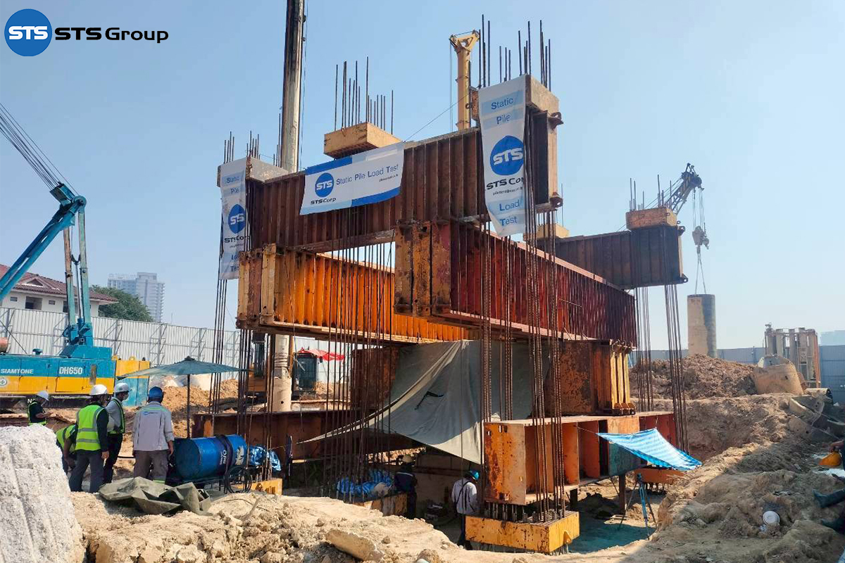 งานทดสอบ Static Pile Load Test โครงการ ONCE WONGAMAT CONDOMINIUM PROJECT ของ STS Group หน่วยธุรกิจทดสอบเสาเข็ม (STSCorp : PT-BU) สถานที่ : อ. บางละมุง จ.ชลบุรี เสาเข็มทดสอบ : Bored Pile Dia. 1.80 x 25.00 m. (Max Compression test Load 3,300 tons) ระบบแรงปฏิกริยา : 6 nos. of Anchor Pile System Piling Contractor : Siam Tone Co.,Ltd. Pile Testing Company : STS Corporation Co.,Ltd.