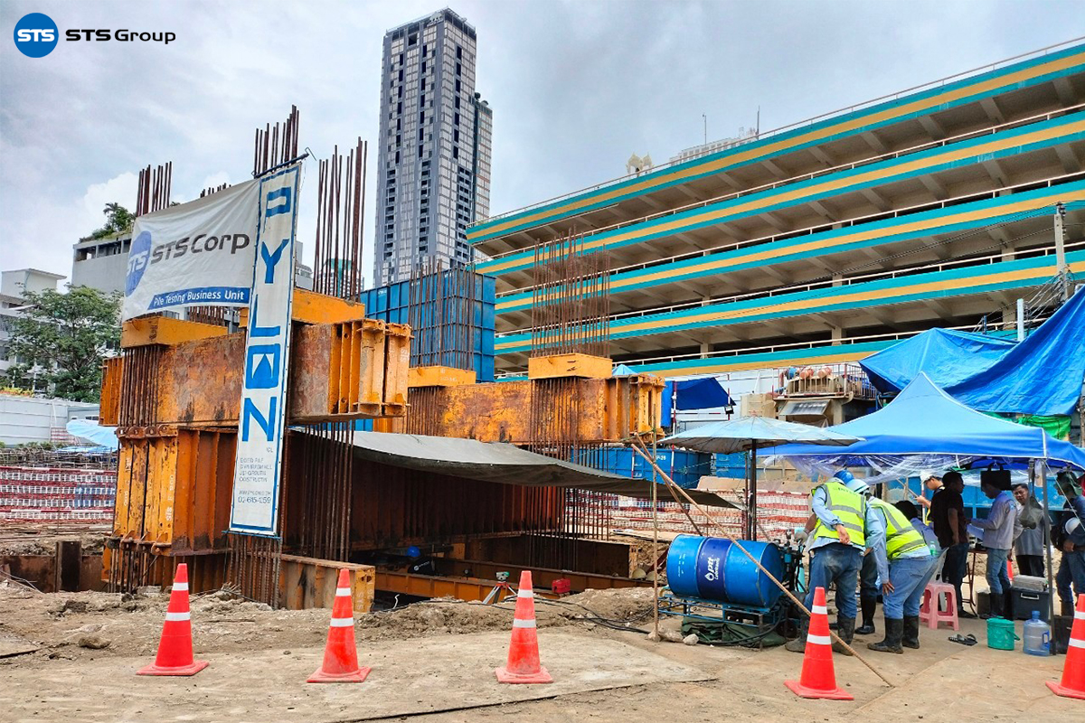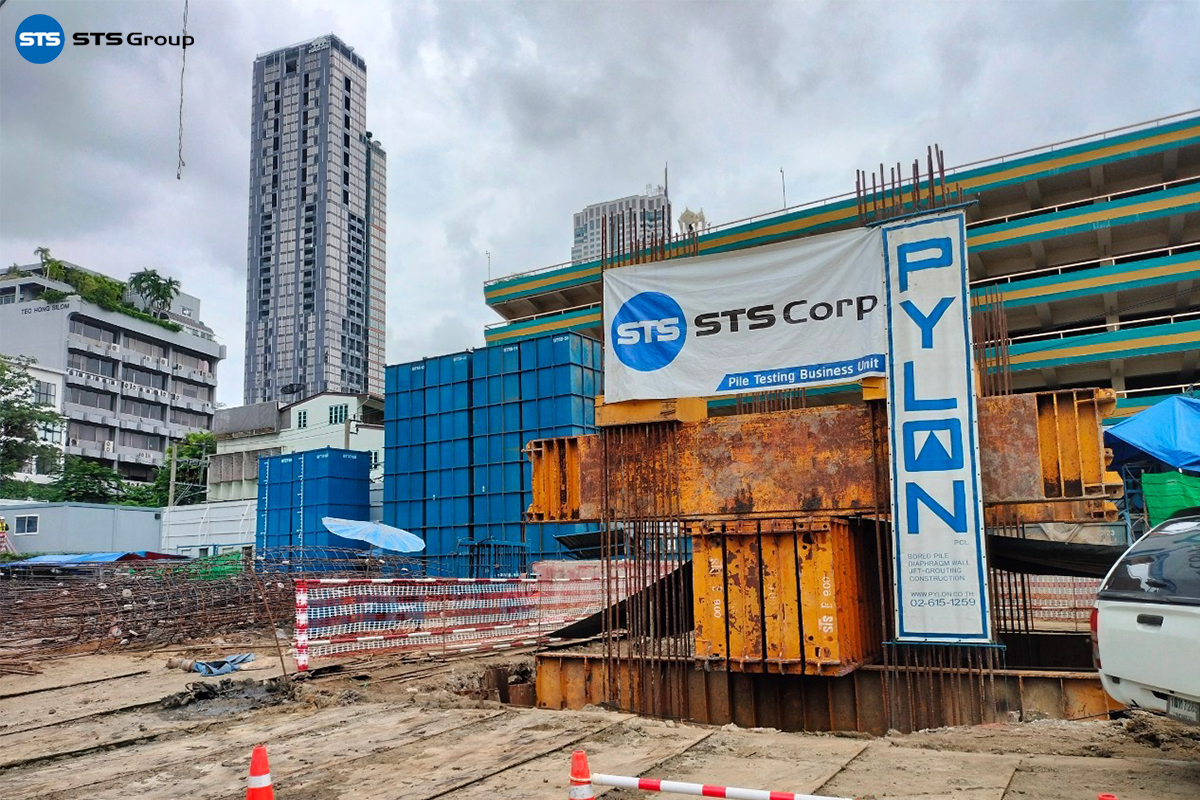 การทดสอบ Full Instrumented Static Pile Load Test ของSTS Group หน่วยธุรกิจทดสอบเสาเข็ม (STSCorp : PT-BU) โครงการ HATAI SILOM Project สถานที่ : ถนนสีลม บางรัก กรุงเทพมหานคร เสาเข็มทดสอบ : Bored Pile Dia. 1.50 x 65.00 ม. (Max target test Load 3,625 tons) ระบบแรงปฏิกริยา : 4 nos. of Anchor Pile System Piling Contractor : Pylon PCL. Pile Testing Company : STS Corporation Co.,Ltd.