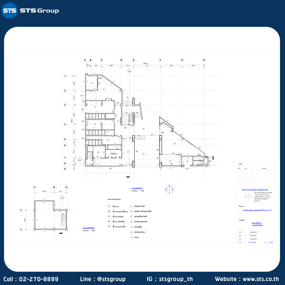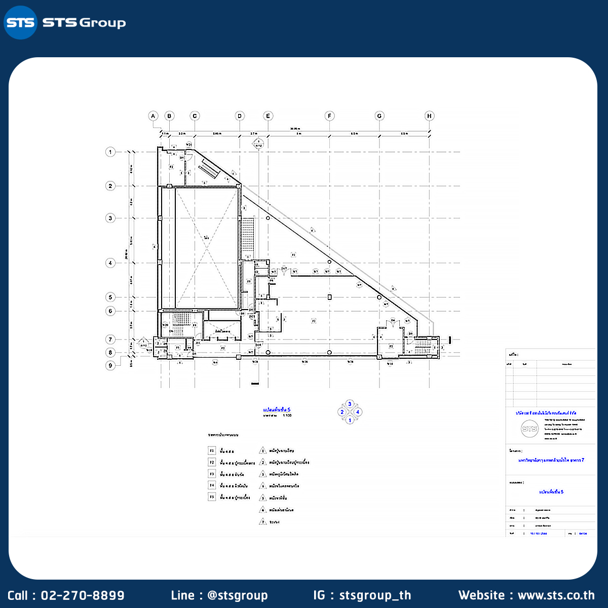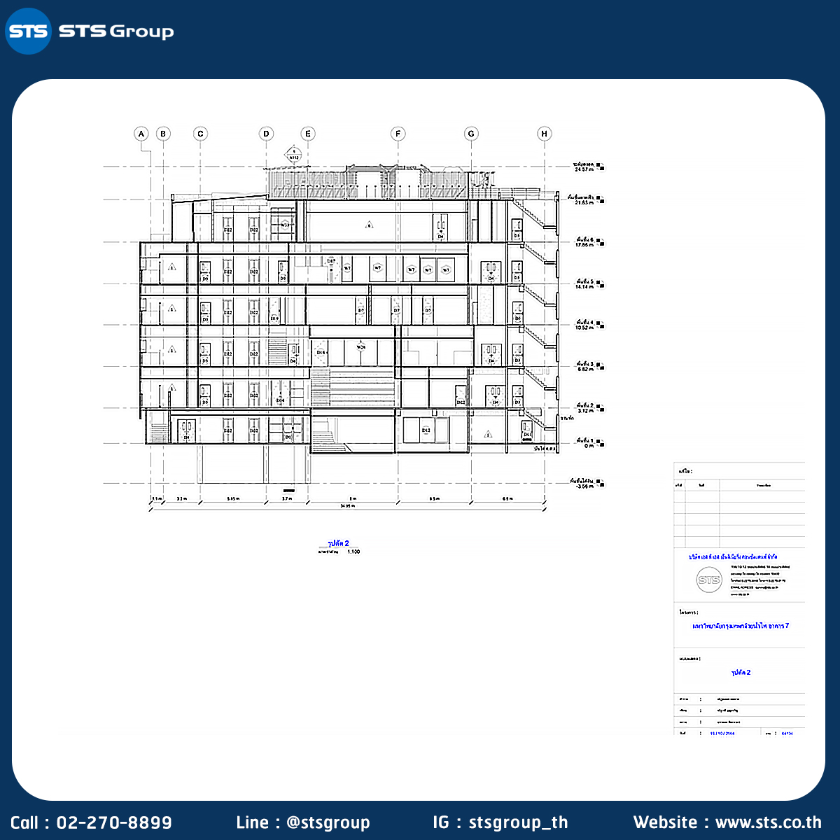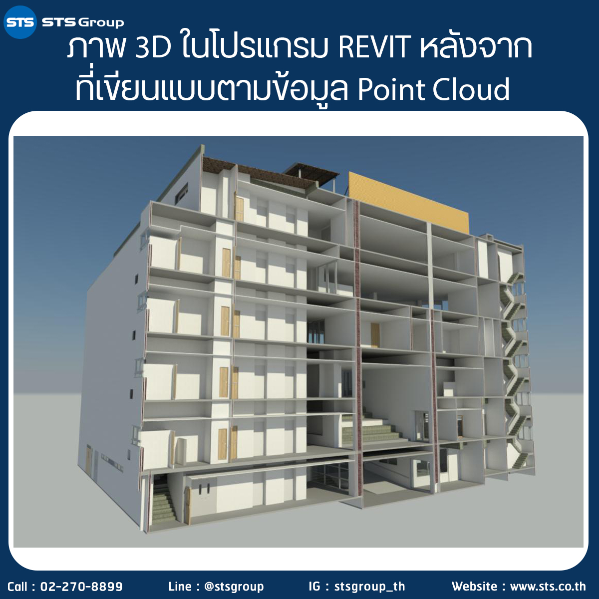 ข้อมูลหลังจากการประมวลผลและเขียนแบบจะอยู่ในรูปแบบ 3D Model และแบบ 2D Drawing โดยใช้โปรแกรม REVIT และข้อมูลในรูปแบบไฟล์อื่นๆ เช่น Autocad, pdf เป็นต้น Level of Development (LOD) ของงานอยู่ที่ LOD200 , LOD300 ฝ่าย : งานสำรวจจัดทำแผนที่ภูมิประเทศและงาน GIS เจ้าของโครงการ : มหาวิทยาลัยกรุงเทพ . สนใจสอบถามรายละเอียดบริการงาน 3D Laser Scanner ลูกค้าสามารถติดต่อได้ที่ช่องทางต่างๆ ต่อไปนี้ Line Official: @stsgroup 02-270-8899 Ext. 401,412,413,422 Fax. 02-279-8170 Email: survey@sts.co.th www.sts.co.th